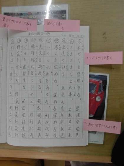 ノートの使い方をしっかり守って,漢字をくり返し書いてくださいね。