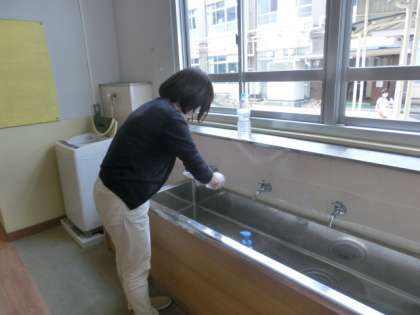 学校のいろいろなところを消毒してくれています