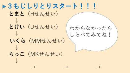 今回は「3文字の言葉」でしりとりしてみましょう。