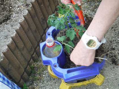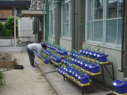 生活の学習で育てるミニトマトを先生たちで植えました!一鉢に一本大切に植えました!