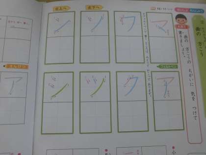 先日出た課題の書写ノートで,フェルトペンと書かれているところがありますが,えんぴつで書いてもらって大丈夫です。