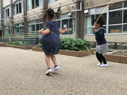 学校に来ているお友達は,なわとびの練習に励んでいます!