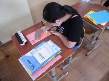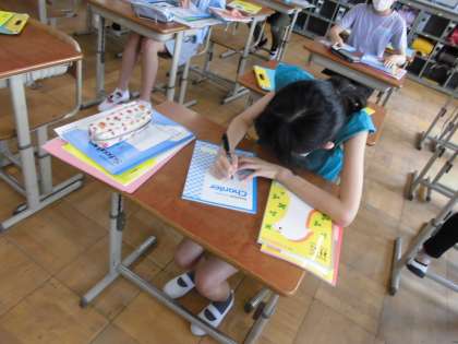 普段は4月に行うノート配りですが,本日各教科のノートを配布しました。