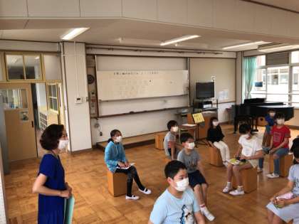 好きな歌はありますか?みんなで交流していました。担任のK先生の好きなアーティストは,THE YELLOW MONKEYだそうです。子どもたちは,キョトンとしていました。またお家で調べて,曲を聴いてみてくださいね。音楽は専科の先生です。専門性を生かしてたくさん教えてくださいます。感染症予防もあり制限がある中ではありますが,音楽の学習を楽しんでほしいと思います。