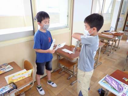 友達と距離をとって交流しました。
