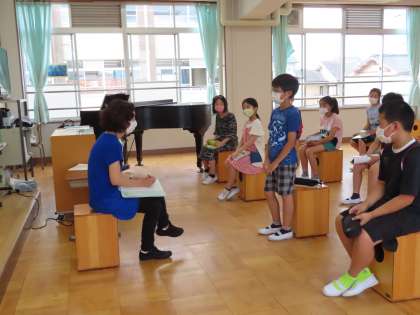 5年生からは音楽専科の先生に教わります。初回の授業はオリエンテーションを始まりました。