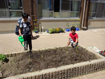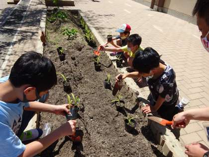 今日は,ポップコーンになる「イエローポップ」の苗を植えました。「おおきくなあれ!」どれくらいのびるのか楽しみですね!