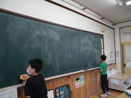黒板を消したり,黒板にはってあるプリントをとったりするなど,子どもたちがみんなの学習のためにと,たくさん手伝ってくれました。