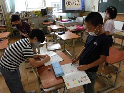 外国語の学習で,友だちどうしで挨拶をしたり,好きなものを伝えあったりする活動をしました。