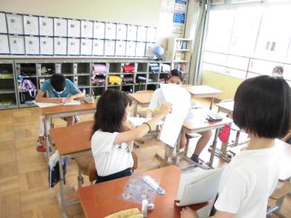 線対称な図形のかき方を勉強したので友だち通しで問題を出し合いました。