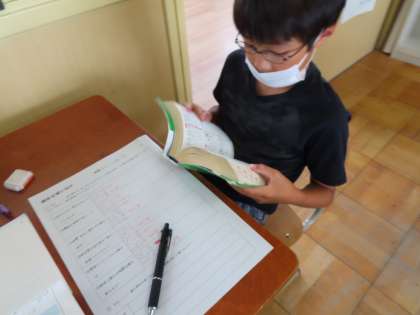 それぞれの漢字が,どの部分が音で,どの部分が意味を表しているのかを調べたり,漢字の成り立ちを漢字辞典を使って調べたりしました。