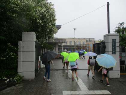 傘をさして来るので多く感じるのかもしれませんが,子どもの列が途切れません。大宮小の子どもたちって,こんなに多かったんだな〜と感じながら約30分挨拶をしていました。マスクも忘れないように気をつけてくれていますね。