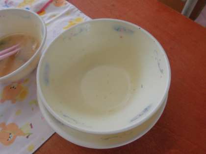 丼でご飯粒が取りにくい献立でしたが,ピカピカのお茶碗でごちそうさまをした児童がたくさんいました。
