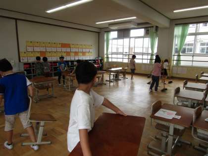 広い教室ですが,みんなで力を合わせて掃除しました。