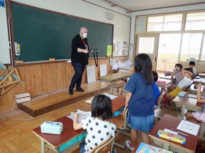 絵をもとに英語で何かを当てるゲームをして盛り上がりました。