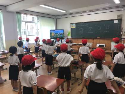着替えた後は,体操と外に出て並び方の練習をしました。