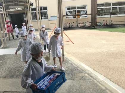 今週は,くまグループの人たちが給食当番をしています。