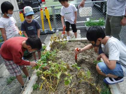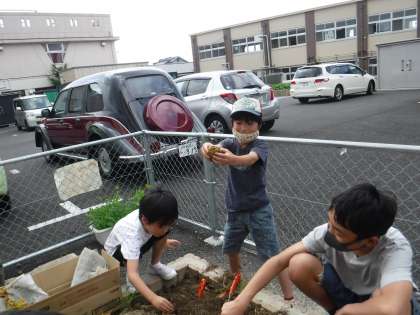 今日は,そらいろ畑で育てたじゃがいもを収穫しました!「うわ〜!いもだ!」「大きいな!」とうれしそうな声が聞こえました!