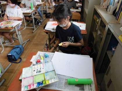 4年生では,図画工作科の学習で「まぼろしの花」をかいています。