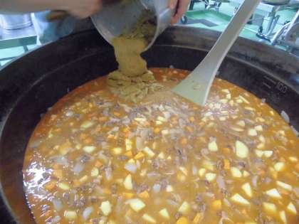 給食のカレーはルーから手作りです。