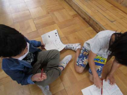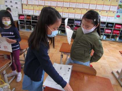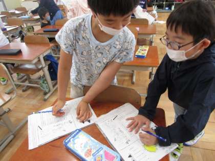 マスクをしっかりとつけて,友達と発表しあいました。