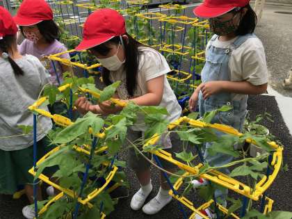 ただ・・・つるが友達のアサガオを絡まっている子もいました。