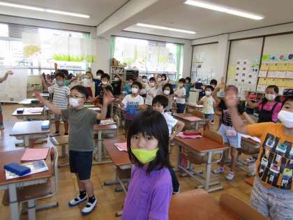 朝の会のわくわくタイムは,ダンスを踊っています。