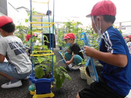 子どもたちは生活科の時間にアサガオの葉やつるを観察カードにかきました!