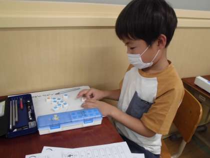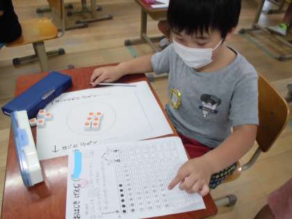 今日は,0というかずについて学習した後に10の分け方の復習をしました。