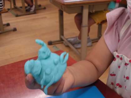 たなばたかざりが早く終わった子たちは,ねんどで学校のウサギ「うーちゃん」「キャラメルちゃん」をつくってみました!