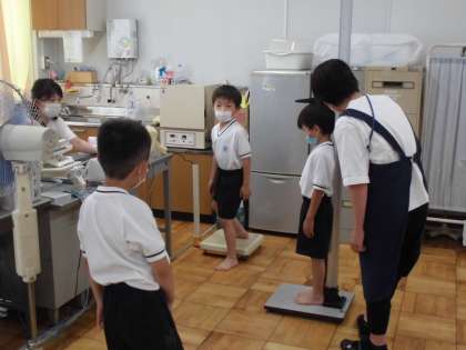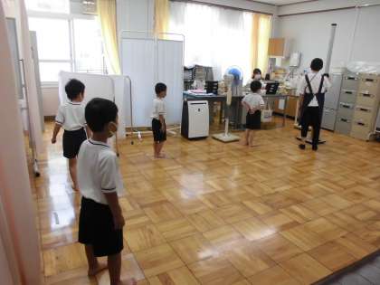 間隔をあけて順番を守りながら保健室の先生たちに身長と体重を測ってもらいました