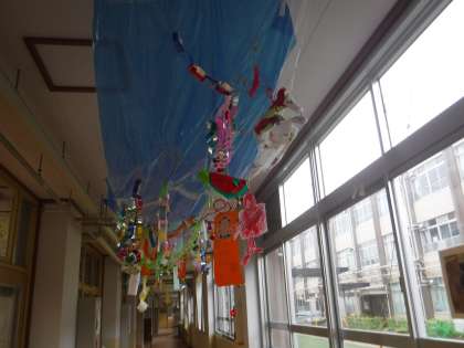 今年もそらいろの教室前に七夕の飾りを掲示しています。風がふくとサラサラと飾りがゆれます。みんなで願い事も考えてつけました。