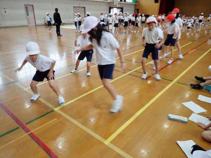 体力テスト反復横跳びをしました。