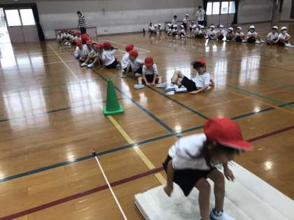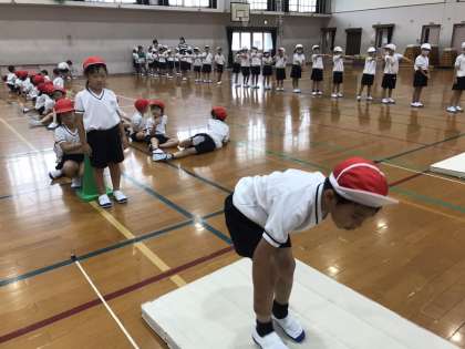 子どもたちは,ひざを曲げてリズムを取りながらしっかりと跳んでいました!