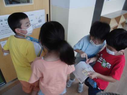 「廊下ははしらないよ」と声をかけており,しっかり者のお兄さんお姉さんになっていました。