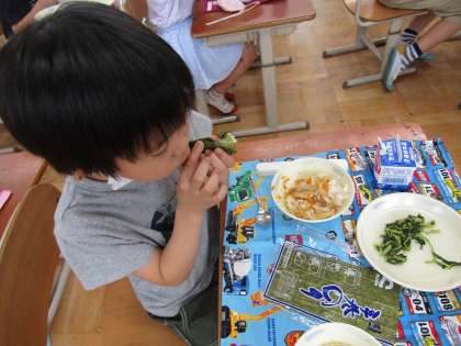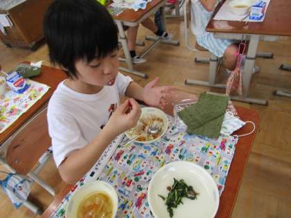 しっかりと手を消毒して,わくわくしながら食べました。