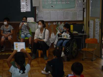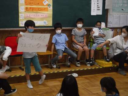 1年生が今日もそらいろの教室に来てくれました。お互い自己紹介をしてその後,そらいろクイズをしました。「楽しかったです!」「1年の教室にも来てくださいね!」と手を振って帰っていきました。明日は,4組さんが来てくれます。