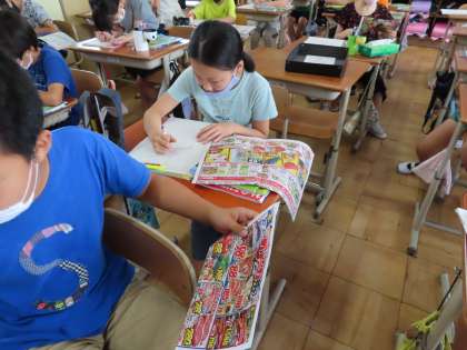 社会科の学習で,スーパーマーケットで売られている食料品は,どこで作られているのか調べました。