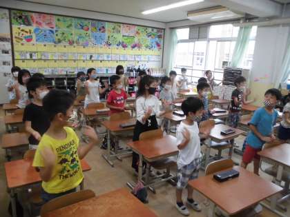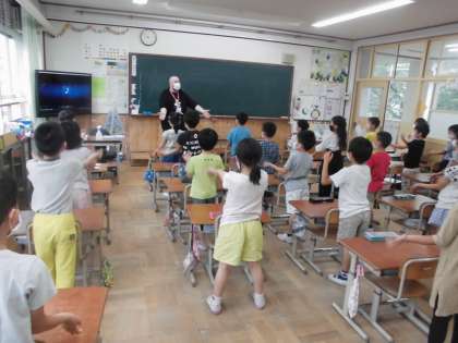 ALTの先生が教室に入るなり大喜びの子供たち。
