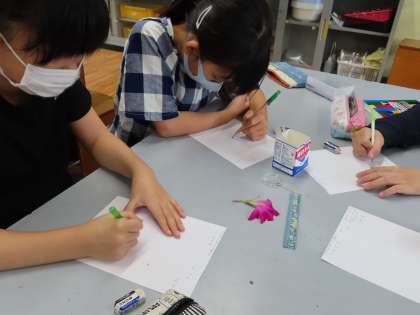 1年生の頃に育てたアサガオを手で切り開いて調べました。みんな一生懸命に観察し,熱心にスケッチしていました♪