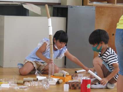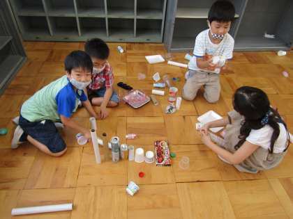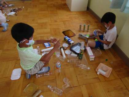 集めたガラクタで子どもたちは色々工夫しながら遊んでいました。