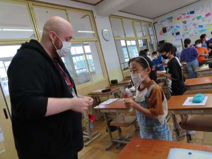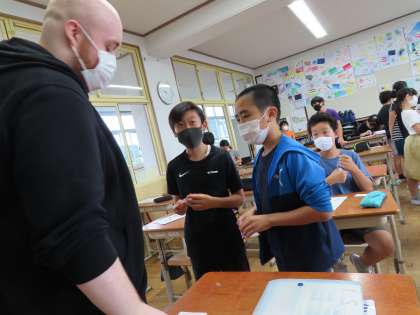 英語科では,名前や好きなものを言って,自己紹介をする学習を進めてきました。