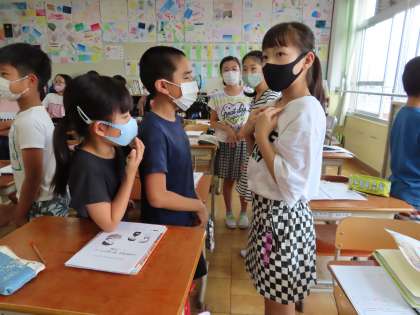 英語科の学習で,おたがいの誕生日をたずね合い,誕生日の早い順に並びました。
