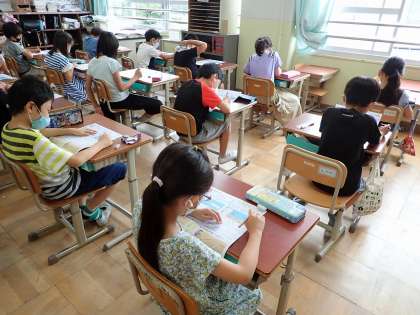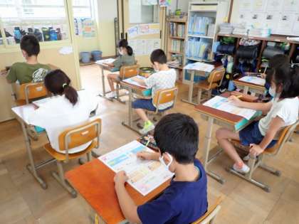 見直しの時間に教科書をもう一回読み直している子など