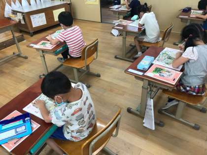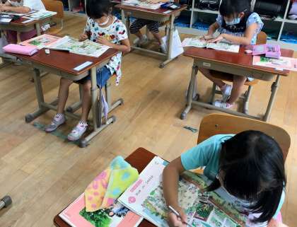 子どもたちは,動物たちがいろいろなことをしているなかで,それがいいことなのか,わるいことなのか教科書に印をつけていきました!