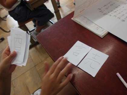 学習のまとめに,へんとつくりのパズルを作って楽しみました。
