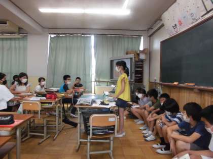 「消火器を使ったことがある人はいますか?」と話を始める子,