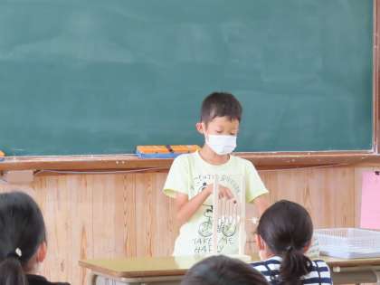 「おぉ!」「どうやって作ったん?」「すごーい!」など,友だちの作品に興味津々の子どもたちでした。