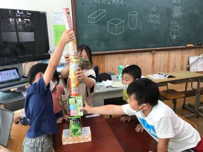 友達と一緒に学習するのはとってもたのしいようで,わいわいいいながら形を組み合わせていました!