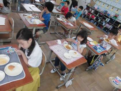 まだ,コロナウイルスの関係でしゃべらず黙々と食べる給食ですが,好き嫌いも少なく,たくさん食べられています。